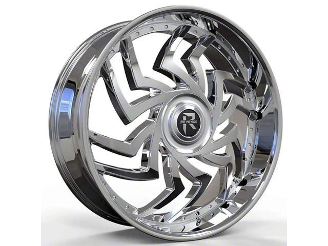 Revenge Luxury Wheels RL-107 Big Floater Chrome 6-Lug Wheel; 26x9.5; 25mm Offset. Enhance your vehicle's look with the Revenge Luxury Wheels RL-107 Big Floater Chrome 6-Lug Wheel. This premium wheel adds a touch of elegance and class to your vehicle, complementing its sophisticated aesthetic.