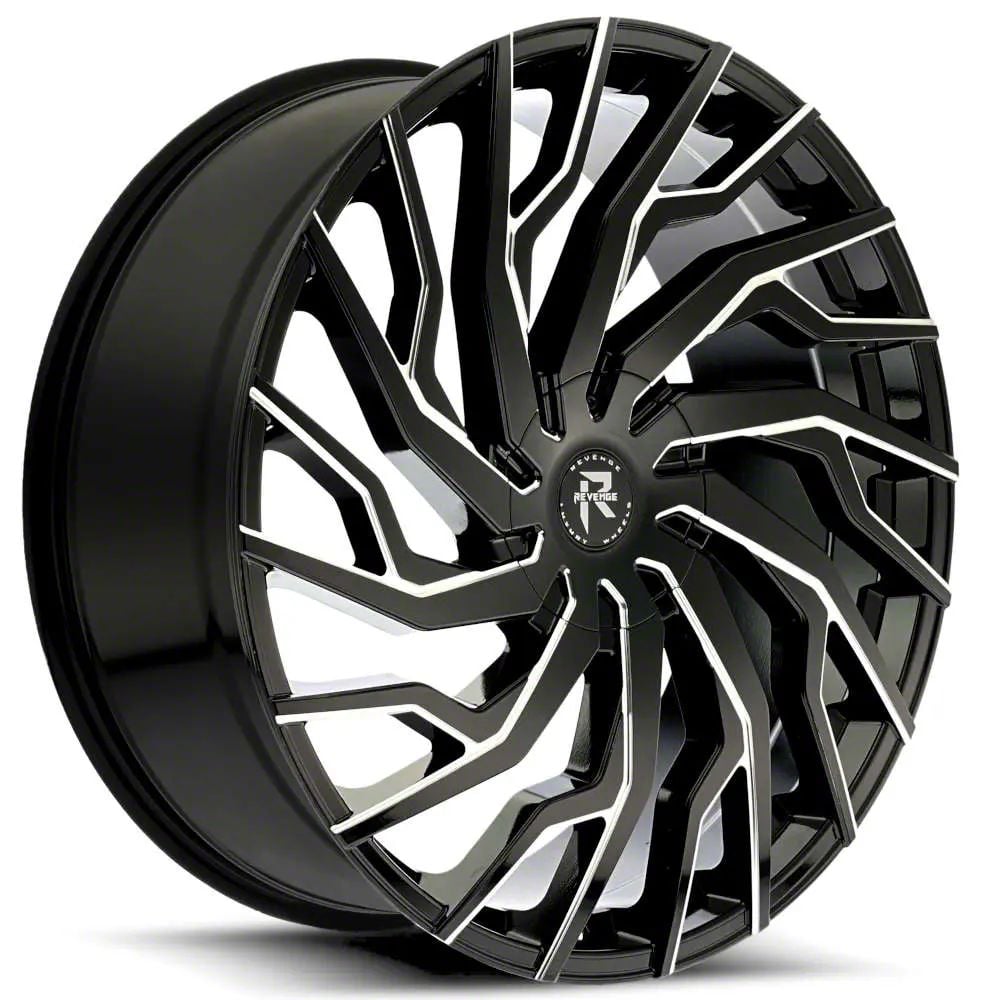 Revenge Luxury Wheels RL-101 Black Milled Windows 6-Lug Wheel; 24x9; 25mm Offset - Enhance your vehicle's style with the Revenge Luxury Wheels wheel. This wheel's distinctive design and finish complement your vehicle's aesthetics, making a bold statement. It's crafted to accentuate the unique character of your car, emphasizing a premium and robust appeal.