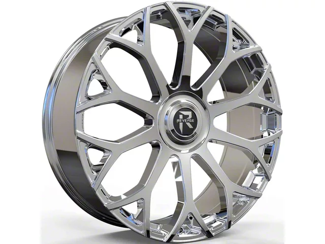 Revenge Luxury Wheels RL-105 Big Floater Chrome 6-Lug Wheel; 24x9; 25mm Offset. Enhance your vehicle's look with the Revenge Luxury Wheels RL-105 Big Floater Chrome 6-Lug Wheel. This premium wheel adds a touch of elegance and class to your vehicle, complementing its sophisticated aesthetic.