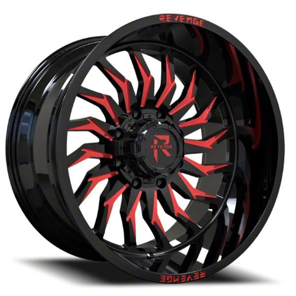 This 20x10 Revenge Off-Road Wheels RV-204 Black and Red Milled 8-Lug Wheel underwent a thorough finishing process that looks great on your vehicle and can withstand the elements of driving.