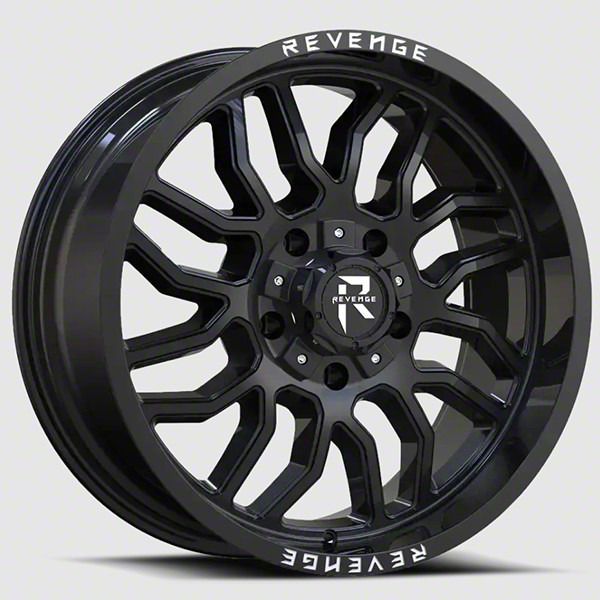 Gloss Black Finish. This 20x12 Revenge Off-Road Wheels RV-205 Series Wheel is completed in a high quality black finish for an aggressive appearance that will make others green with envy. For added protection and good looks, this Wheel features a durable, gloss clear coat that is tough enough to stand up against the hazards of everyday driving - including road chips and pitting.