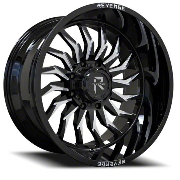 Revenge Off-Road Wheels RV-204 Black and Milled 8-Lug Wheel; 22x12; -44mm Offset - Experience the sleek elegance of the Revenge Off-Road Wheels wheel. Its matte black finish adds a touch of sophistication to your vehicle, enhancing its overall appearance without compromising on durability. Perfect for a variety of vehicle styles, this wheel is a testament to the brand's commitment to quality and aesthetic excellence.