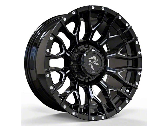 Revenge Off-Road Wheels RV-201 Black and Milled 5-Lug Wheel; 22x12; -44mm Offset exudes sophistication with its finish, offering a sleek and modern appeal to any vehicle it adorns. The design is meticulously crafted to enhance the aesthetic of your vehicle, giving it a distinctive and upscale look. Perfect for those seeking to elevate their vehicle's style, this wheel blends seamlessly with both contemporary and classic vehicle designs, making it a versatile choice for a wide range of vehicles. Its robust construction ensures durability, making it a reliable choice for drivers who value both style and quality.