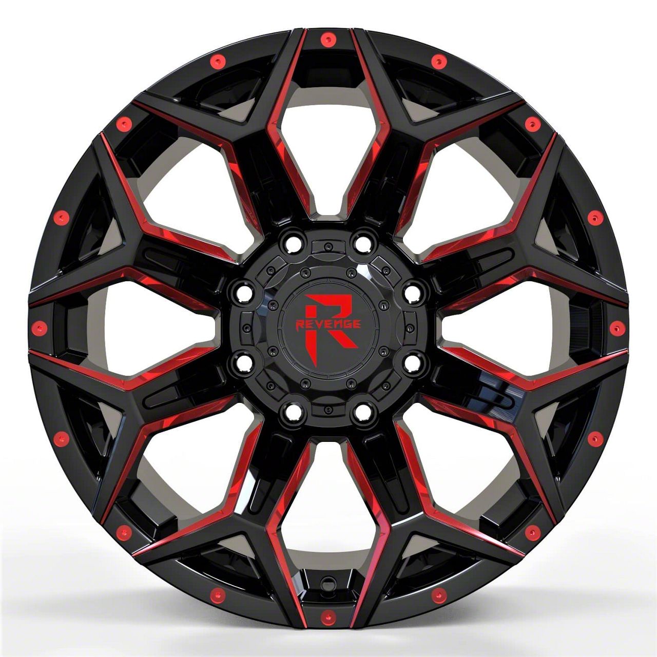 Revenge Off-Road Wheels RV-202 Black and Red Milled 8-Lug Wheel; 20x9; 0mm Offset