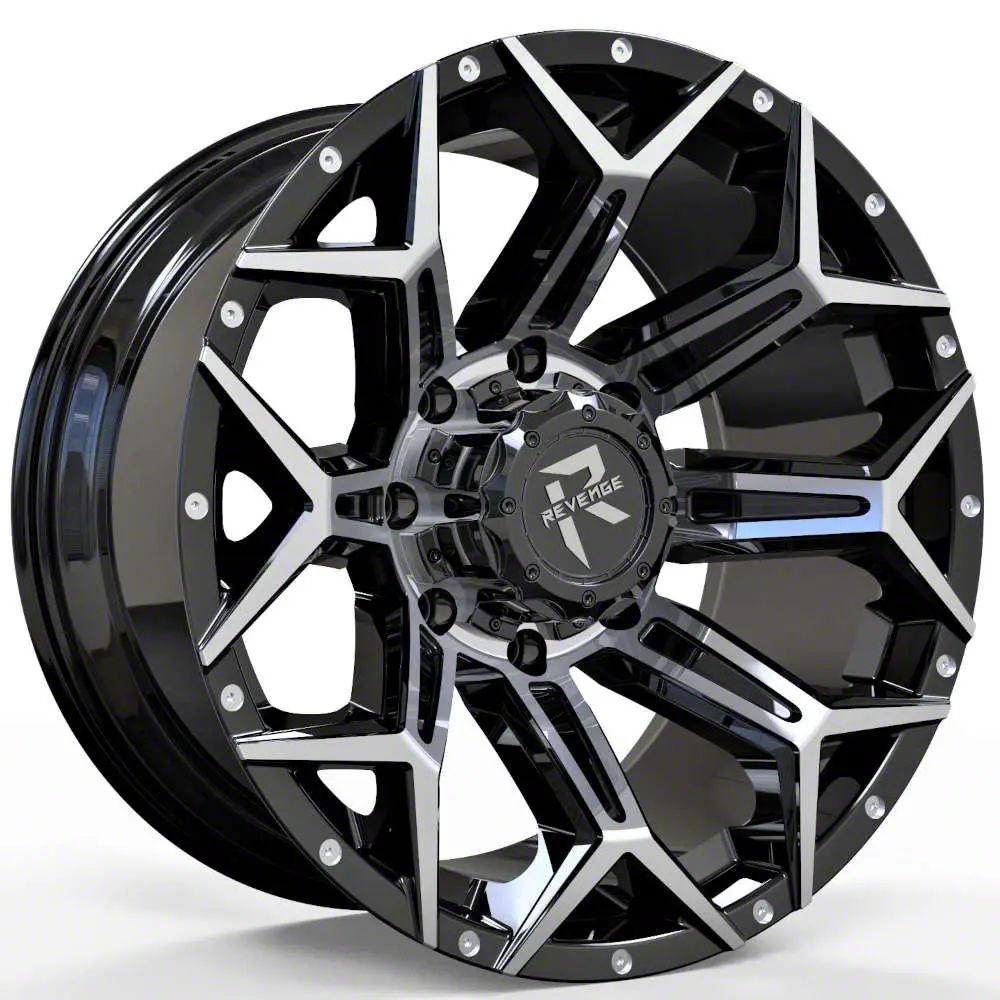 This 20x9 Revenge Off-Road Wheels RV-202 Black Machine 5-Lug Wheel underwent thorough testing to not only look great, but also perform well. For added protection and looks, there is a durable clear coat that withstands the rigors of daily driving.
