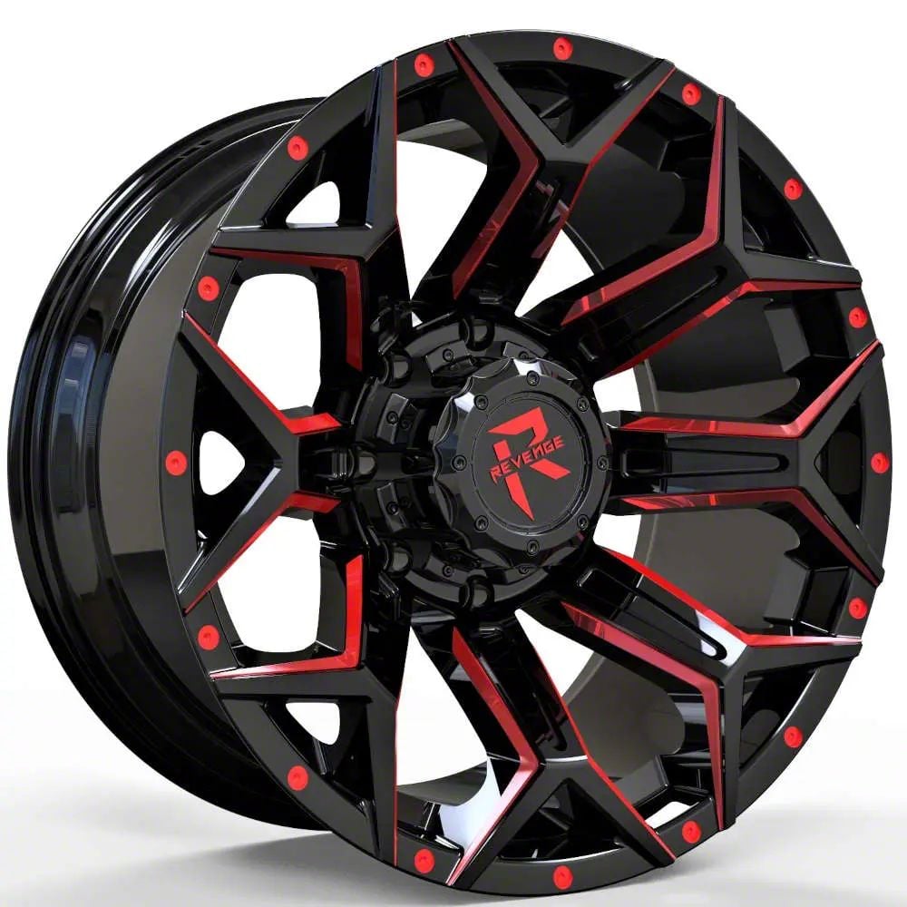 The 20x10 Revenge Off-Road Wheels RV-202 Black and Red Milled 8-Lug Wheel underwent a thorough finishing process to make sure the wheel not only looks great, but that it can also handle the rigors of driving.
