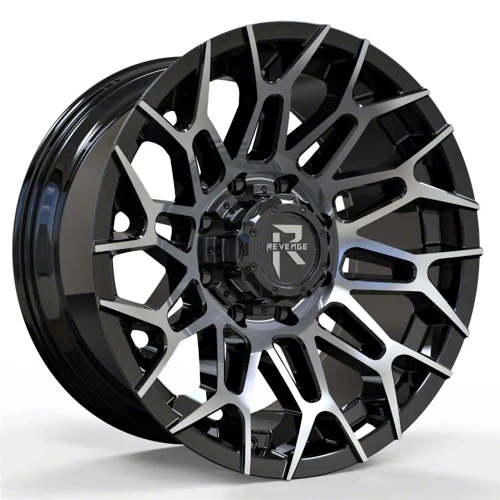 Revenge Off-Road Wheels RV-203 Black Machine 8-Lug Wheel; 20x10; -19mm Offset offers a sleek and modern design that enhances the visual appeal of any vehicle. Crafted with attention to detail, this wheel merges aesthetic elegance with a robust build, making it a fitting choice for those seeking a blend of style and durability.