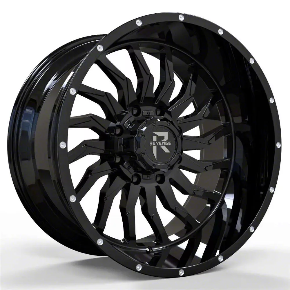 Revenge Off-Road Wheels RV-204 Gloss Black 6-Lug Wheel; 20x9; -12mm Offset - Elevate your vehicle's style with this wheel's striking design. Reflecting the Revenge Off-Road Wheels' commitment to quality, it promises to add a touch of elegance and a strong character to your ride. Perfect for those seeking to make an impression without saying a word.