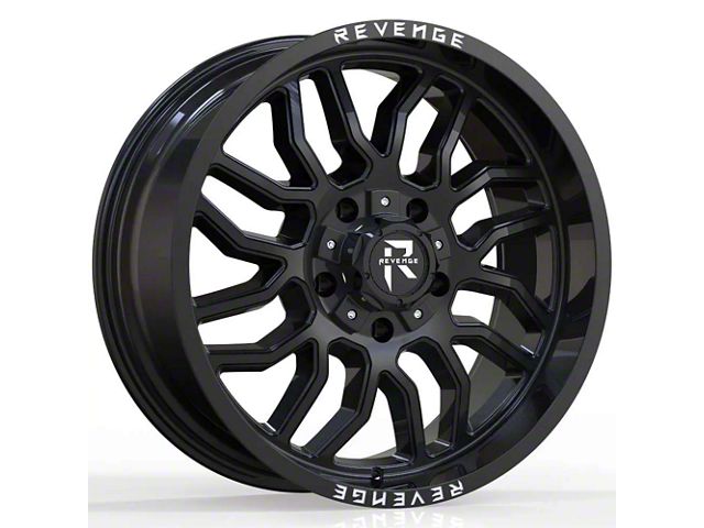 Revenge Off-Road Wheels RV-205 Gloss Black 5-Lug Wheel; 20x10; -19mm Offset exudes sophistication with its finish, offering a sleek and modern appeal to any vehicle it adorns. The design is meticulously crafted to enhance the aesthetic of your vehicle, giving it a distinctive and upscale look. Perfect for those seeking to elevate their vehicle's style, this wheel blends seamlessly with both contemporary and classic vehicle designs, making it a versatile choice for a wide range of vehicles. Its robust construction ensures durability, making it a reliable choice for drivers who value both style and quality.