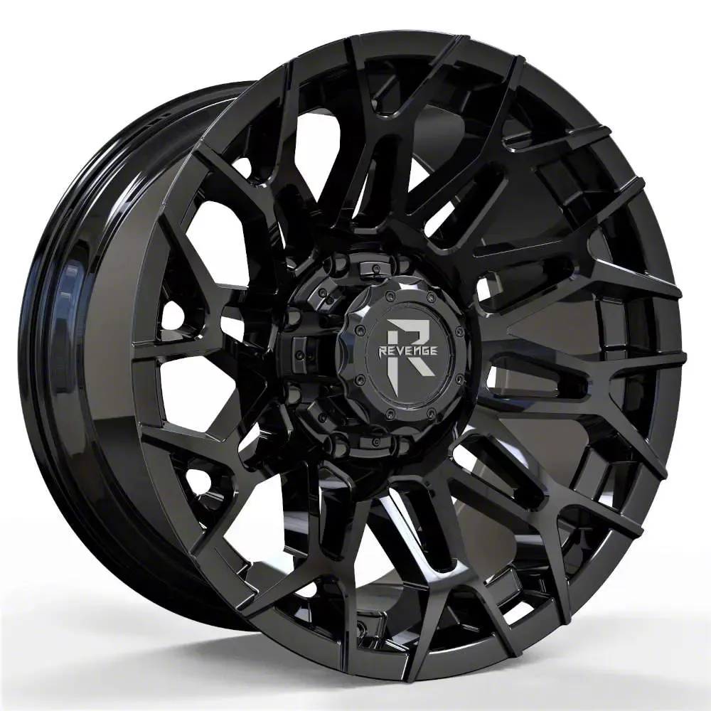 Revenge Off-Road Wheels RV-203 Gloss Black 8-Lug Wheel; 20x10; -19mm Offset. Enhance your vehicle's look with the Revenge Off-Road Wheels RV-203 Gloss Black 8-Lug Wheel. This premium wheel adds a touch of elegance and class to your vehicle, complementing its sophisticated aesthetic.