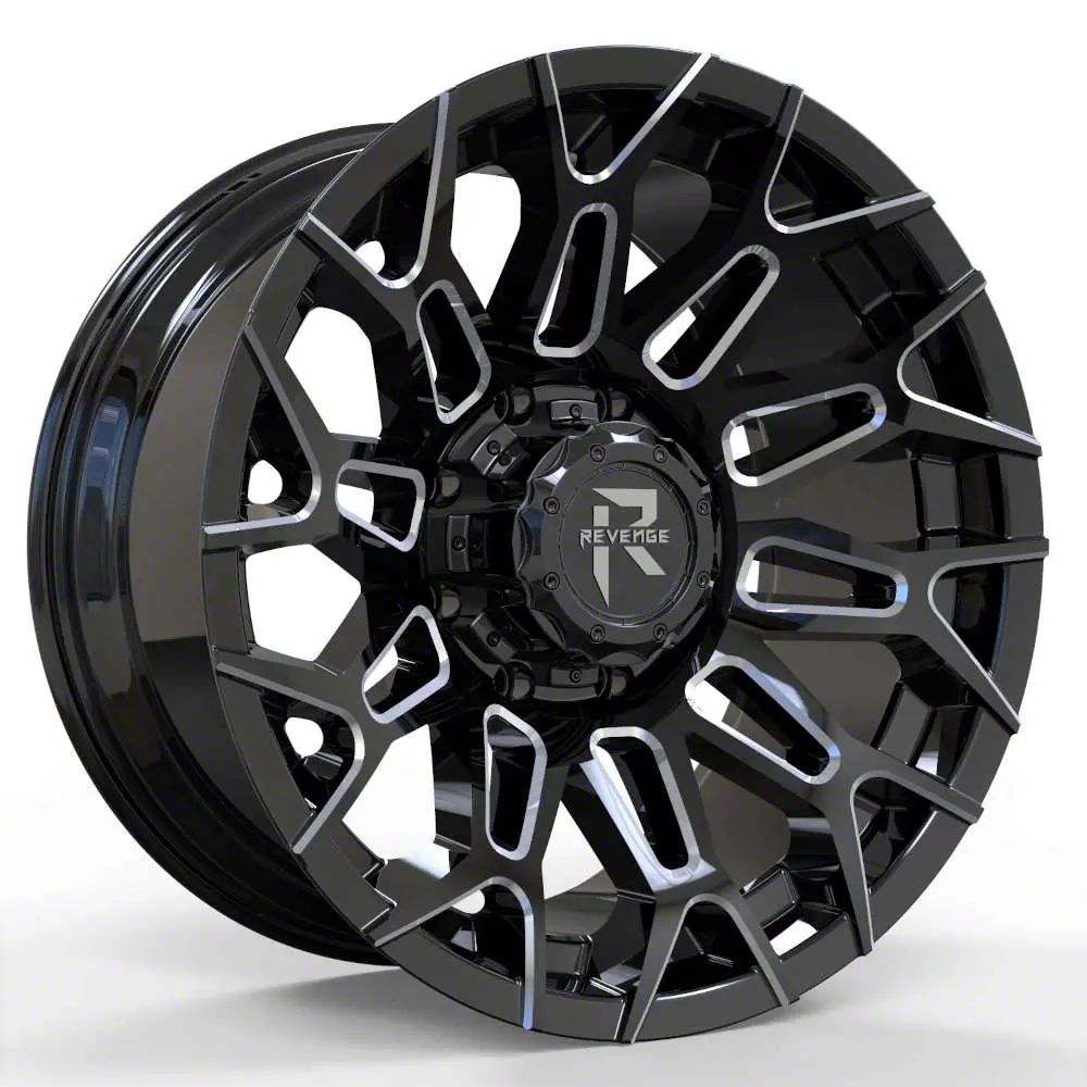 Revenge Off-Road Wheels RV-203 Black and Milled 8-Lug Wheel; 20x10; -19mm Offset - Elevate your vehicle's style with this wheel's striking design. Reflecting the Revenge Off-Road Wheels' commitment to quality, it promises to add a touch of elegance and a strong character to your ride. Perfect for those seeking to make an impression without saying a word.