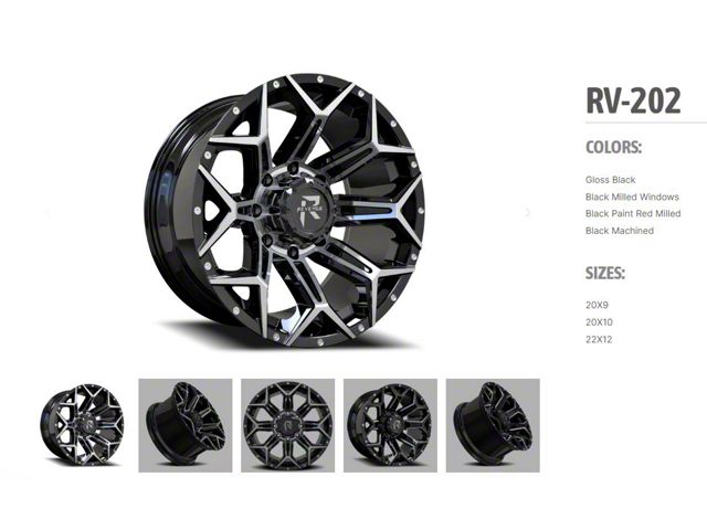 Revenge Off-Road Wheels RV-202 Black and Milled 6-Lug Wheel; 20x10; -19mm Offset: Redefine your vehicle's style with the Revenge Off-Road Wheels RV-202 Black and Milled 6-Lug Wheel. This wheel's elegant design and striking finish embody a blend of sophistication and boldness, perfectly complementing a wide array of vehicle aesthetics. Crafted from high-quality materials, it's a testament to durability and style.