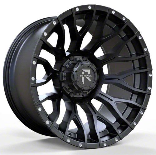 Revenge Off-Road Wheels RV-201 Satin Black with Dots 6-Lug Wheel; 20x10; -19mm Offset. Enhance your vehicle's look with the Revenge Off-Road Wheels RV-201 Satin Black with Dots 6-Lug Wheel. This premium wheel adds a touch of elegance and class to your vehicle, complementing its sophisticated aesthetic.