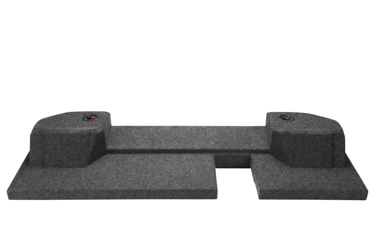 Construction and Appearance. Constructed from high-density MDF for optimal acoustic performance, the box is wrapped in automotive-grade carpet that blends seamlessly with your truck's interior. The sealed enclosure design is tuned specifically for dual 12-inch subwoofers, delivering deep, distortion-free bass with precision.