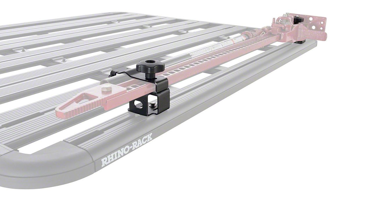 Application. Engineered for universal applications, this Pioneer High Lifting Jack Holder Bracket by Rhino-Rack is suitable for a wide range of vehicles and roof rack systems. Whether you're heading off on an off-road adventure, or camping trip, or simply need to carry recovery equipment for peace of mind, this bracket provides a secure and convenient mounting solution.