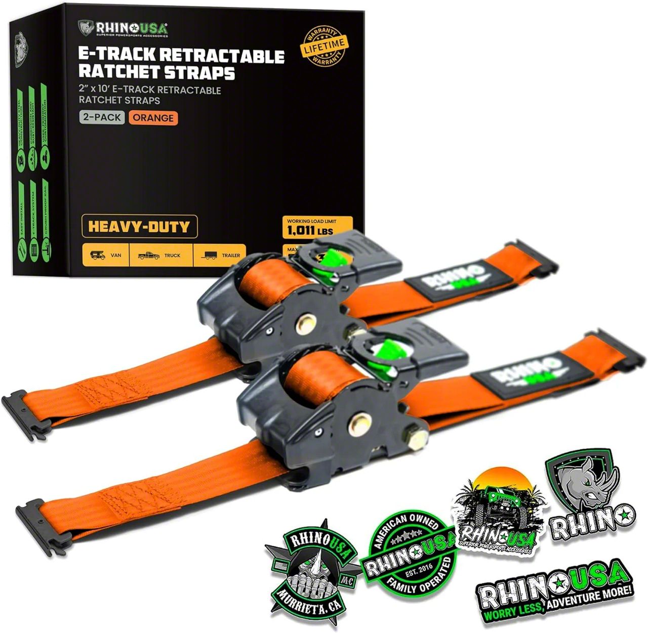 Rhino USA 2-Inch x 10-Foot Retractable E-Track Ratchet Strap Kit; 2-Pack; Orange