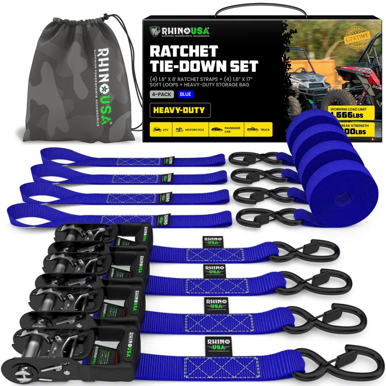 Rhino USA 1.60-Inch x 8-Foot Heavy Duty Ratchet Tie Down Kit; 4-Pack; Blue