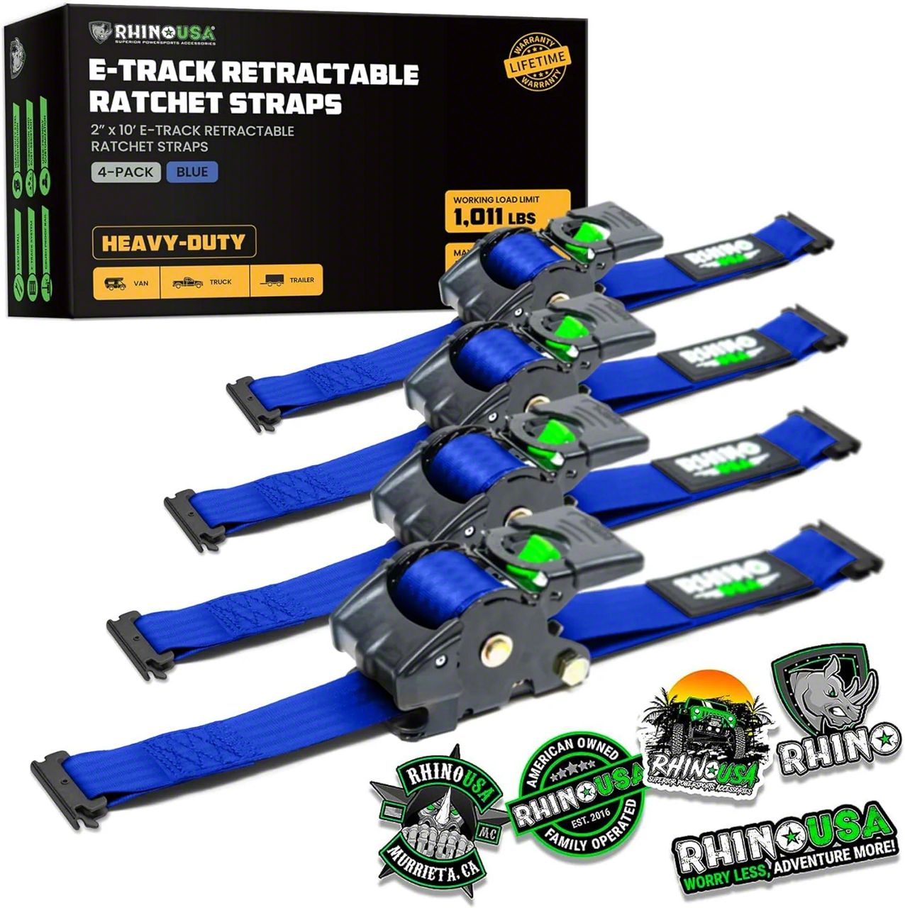 Rhino USA 2-Inch x 10-Foot Retractable E-Track Ratchet Strap Kit; 4-Pack; Blue