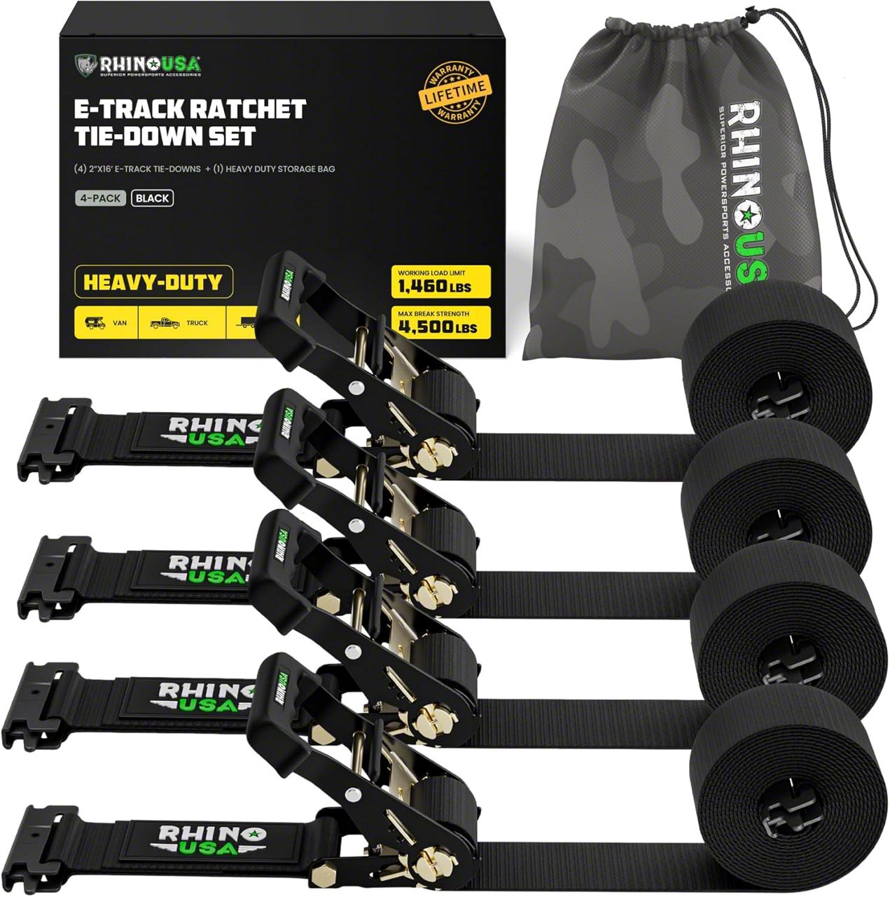 Rhino USA 2-Inch x 16-Foot E-Track Ratchet Strap Kit; 4-Pack; Black