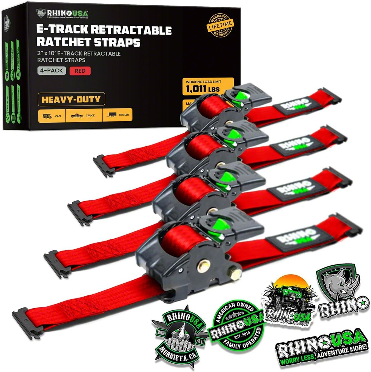 Rhino USA 2-Inch x 10-Foot Retractable E-Track Ratchet Strap Kit; 4-Pack; Red