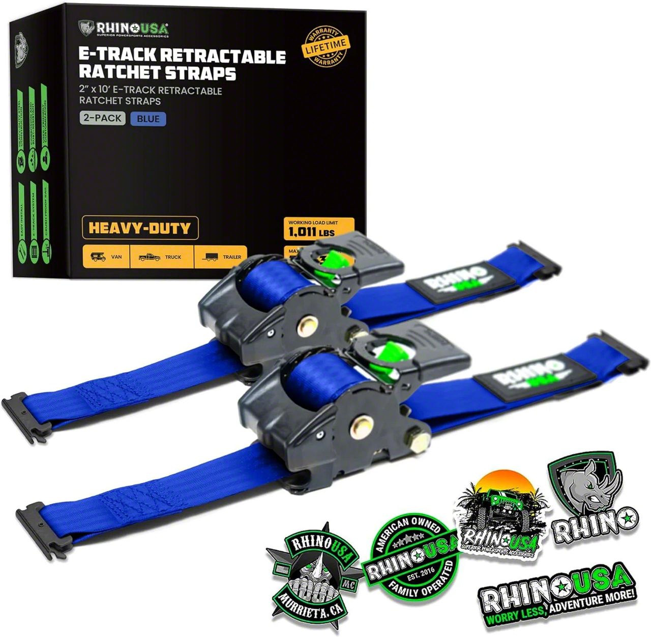 Rhino USA 2-Inch x 10-Foot Retractable E-Track Ratchet Strap Kit; 2-Pack; Blue