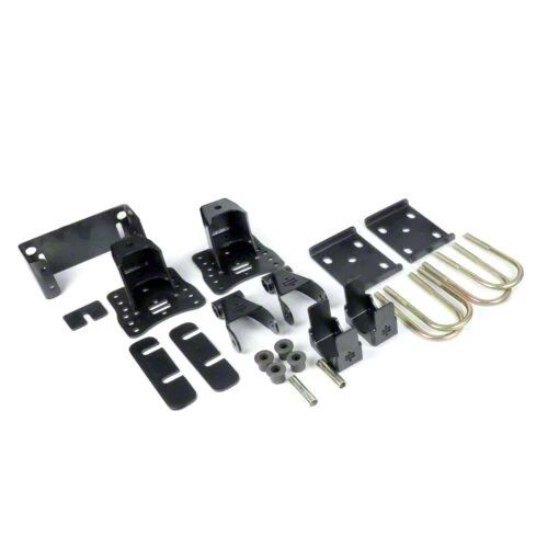 Kit includes all the necessary parts to lower your 99-06 Sierra 5″ in the rear. Front and rear leaf shackle hangers, axle brackets and delrin leaf spring bushings.