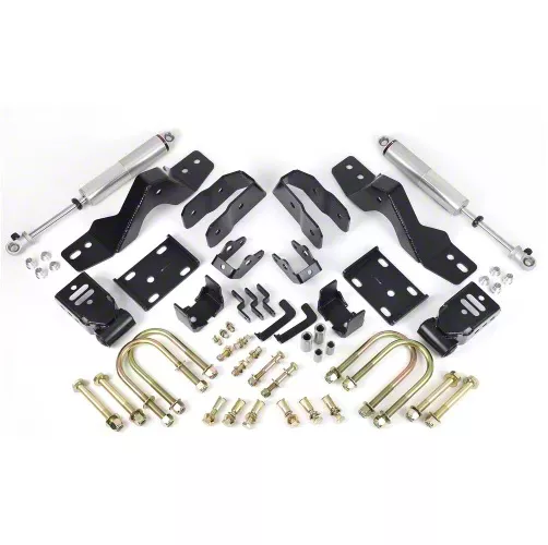 • Includes HQ Series Shocks, Axle Flip Brackets, Leaf Spring Brackets, Shackles, Bump Stops, and Hardware