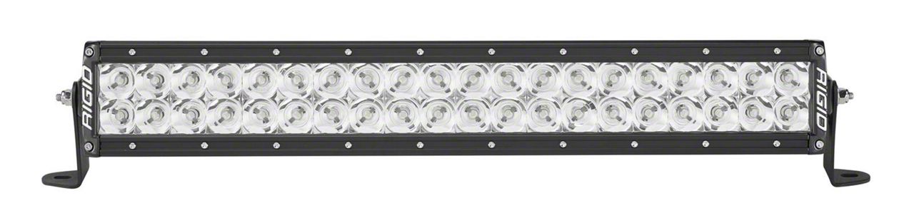 Description. The E-Series is one of RIGID's most versatile, all-around lighting solutions, and recent enhancements in LED technology delivering up to 111 percent more raw lumens than ever before with the E-Series PRO. Among RIGID's most popular product lines, the E-Series PRO has recently benefited from several upgrades to improve both looks and performance. Plus, prominent RIGID branding and blacked-out circuit boards give the E-Series PRO a refined look. Available with your choice of optics, the E-Series features a host of beam options, including Spot, Flood, Driving, Hyperspot, Diffused, Driving/Spot combo, Spot/Flood combo, Spot/Hyperspot combo, and Midnight Edition. These and other innovations make it one of the brightest and most efficient LED light bars on the market. The E-Series was born in off-road, but its versatility makes it well suited for use with power sports, marine, general automotive and even first responder applications. Own The Night with RIGID's E-Series double row LED light bar.