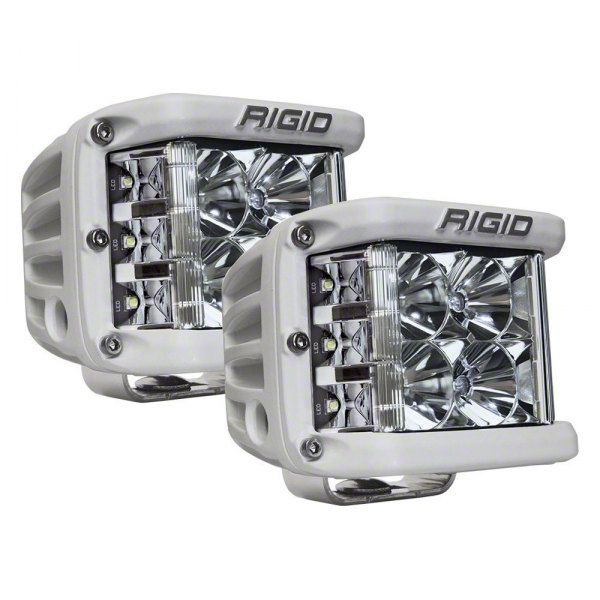 Description. One of RIGID’s most versatile, compact lighting solutions just got better with the RIGID D-SS PRO, Dually-Side Shooter PROfessional Race Output LED pod. Perfect for any application that requires a wide spread beam, including A-Pillars, Fog Lights, and motorcycle applications. The D-SS PRO incorporates powerful optics and recently improved LED technology for greater output with the added benefit of additional LEDs aimed to the side for a much broader beam. The D-SS PRO packs a powerful punch with up to 102% more raw lumens depending on the optics chosen The D-SS PRO fixtures boast up to 120-degrees of horizontal lighting coverage when used in pairs or when used in the single light applications. The main forward-facing LEDs are available with RIGID’s advanced Spot, Flood, or Driving optics, so there’s a D-SS PRO lighting solution for nearly any application. The D-SS PRO LED lights are available in pairs with three side-shooting LEDs on one side of each fixture, or in single applications with a pair of side-shooting LEDs on both sides of the fixture. Only RIGID provides a broad, powerful lighting solution in such a compact package.