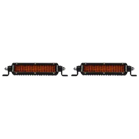Description. RIGID's Amber PRO Edition 6-inch SAE SR-Series is the ultimate combo of street-legal and dust-cutting. Good visibility is a must when out on the trail, overlanding, or racing! RIGID's Amber PRO Edition was developed specifically for high dust, smoke, and other low-visibility conditions. The amber lighting provides superior performance in adverse lighting conditions thanks to the unique attributes of the human eye that make it easier to process light in longer wavelengths. This reduces glare, enhances definition, and improves contrast, allowing you to see farther than traditional white lighting. The 6-inch SR-Series light bar is a sleek, low-profile light, measures less than 2 Inches tall, and features a single row of LEDs. Protected by an aluminum housing, features a blacked-out circuit board, prominent RIGID branding, and a limited lifetime warranty, the SR-Series offers superior build quality with a refined look. RIGID's Amber PRO Edition makes it easier than ever to Own The Night.