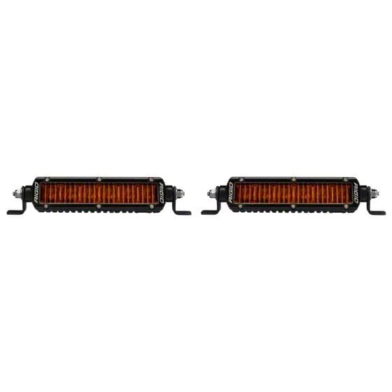 Description. RIGID's Amber PRO Edition 6-inch SAE SR-Series is the ultimate combo of street-legal and dust-cutting. Good visibility is a must when out on the trail, overlanding, or racing! RIGID's Amber PRO Edition was developed specifically for high dust, smoke, and other low-visibility conditions. The amber lighting provides superior performance in adverse lighting conditions thanks to the unique attributes of the human eye that make it easier to process light in longer wavelengths. This reduces glare, enhances definition, and improves contrast, allowing you to see farther than traditional white lighting. The 6-inch SR-Series light bar is a sleek, low-profile light, measures less than 2 Inches tall, and features a single row of LEDs. Protected by an aluminum housing, features a blacked-out circuit board, prominent RIGID branding, and a limited lifetime warranty, the SR-Series offers superior build quality with a refined look. RIGID's Amber PRO Edition makes it easier than ever to Own The Night.