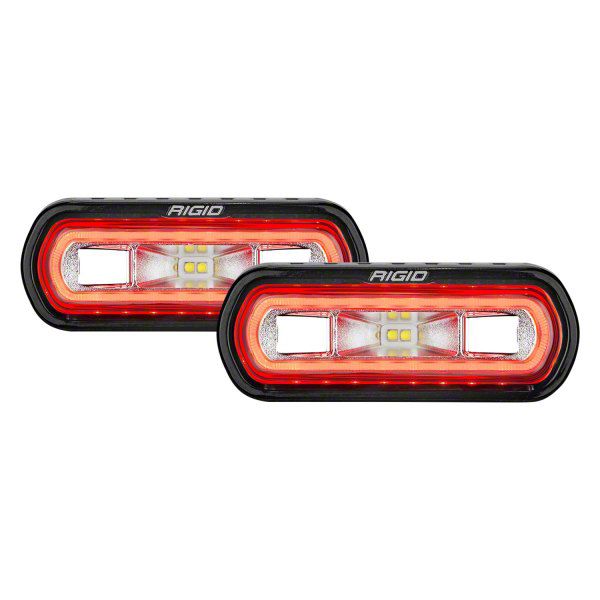 Description. The new RIGID SR-L Series Spreader light provides an easy way to add convenient area lighting and style to any vehicle. This spreader provides a broad 120° beam pattern to illuminate wide areas around any vehicle. The SR-L Series Spreader also offers stylish halo backlighting to provide accent lighting that adds a custom look to any vehicle. The halo backlighting is available in one of four colors: red, blue, amber, or white. Use the flying leads wiring to wire the SR-L Series Spreader light directly into your vehicle’s electrical system or purchase the RIGID wiring harness separately (Part #40300). The SR-L Series Spreader offers the same legendary RIGID build quality as the rest of RIGID’s products, from the high-grade aluminum housing to the impact resistant polycarbonate lens. Packed with power and style, the SR-L Series makes it easier than ever to Own the Night.