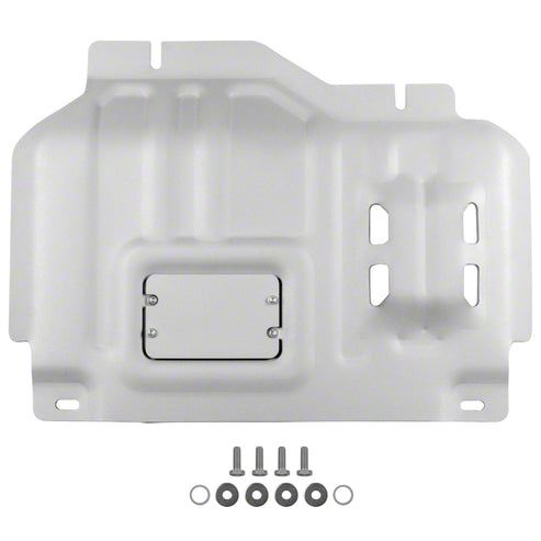 Construction and Appearance. Fabricated from 1/4-inch-thick aluminum alloy, this skid plate is built for strength without adding unnecessary weight. It features a laser-cut, deep-stamped design for precise fitment and optimal coverage. The plate is overlaid with a zinc primer coating and wrapped with a powder-coated top finish, providing excellent resistance to corrosion and rust. Developed in a state-of-the-art facility, it ensures durability even in harsh conditions.