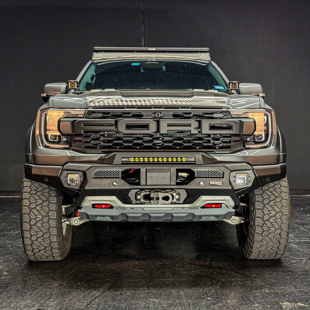 Application. This RIVAL 4x4 Full-Width Aluminum Front Bumper with Skid Plate and Winch Mount fits 2024-2026 Ford Ranger Raptor Models.