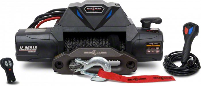 Application. The Road Armor 12,000 lb. Integrated Winch with Synthetic Rope offers universal fitment.