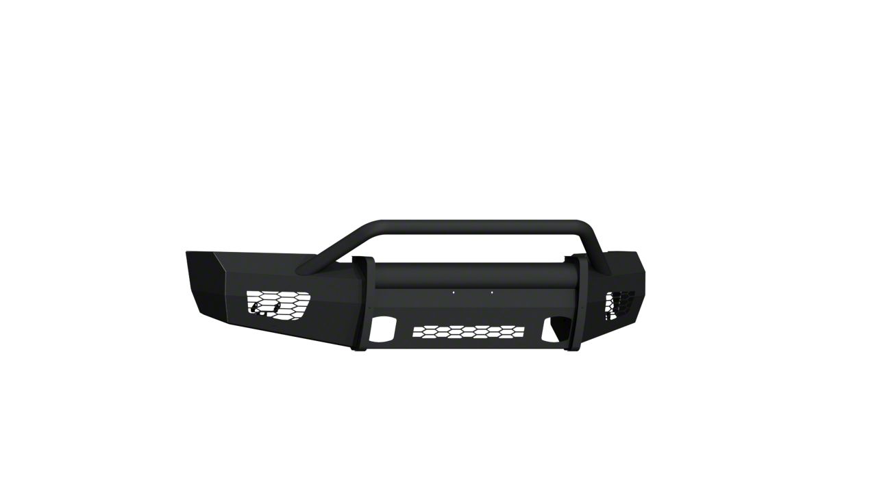 In classic cowboy style the Vaquero is a no frills cattle pushin front end replacement bumper by Road Armor. This modular front bumper accommodate the factory fog lights when equipped and also accommodates the OEM tow hooks. We build this rugged beast using 11 gauge smooth steel for the outer shell, 1/4-inch gusseting and bracketry and the classic beefy Schedule 40 pipe. If this is your style but you want something a little different, a little more refined perhaps, or just want to own the baddest bumper on the market by the name the world trusts for dependability and quality, this one's for you.