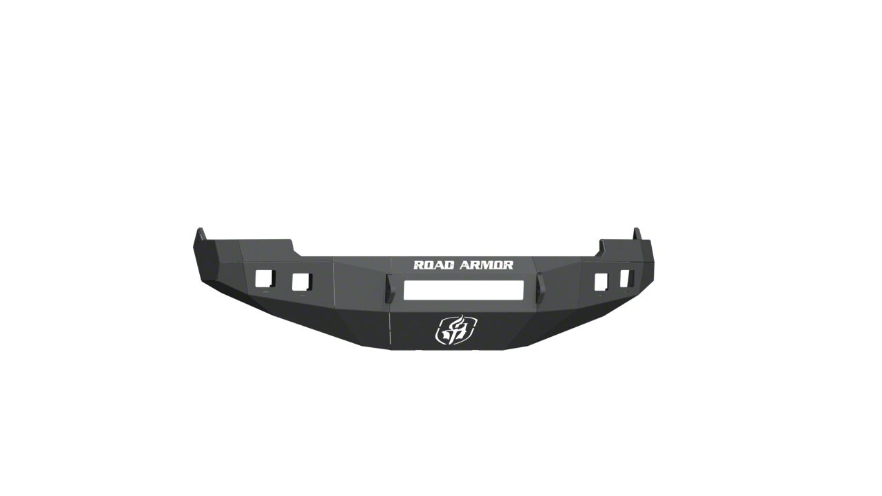 Rugged Front Bumper. Transform your RAM truck into a tougher off-roader with this Road Armor Stealth Non-Winch Front Bumper; Textured Black. Featuring a battle-proven design, it reinforces the front end of your vehicle like no other. And with its formidable styling with its prominent Road Armor lettering and logo, this bumper adds a standout look to your truck.