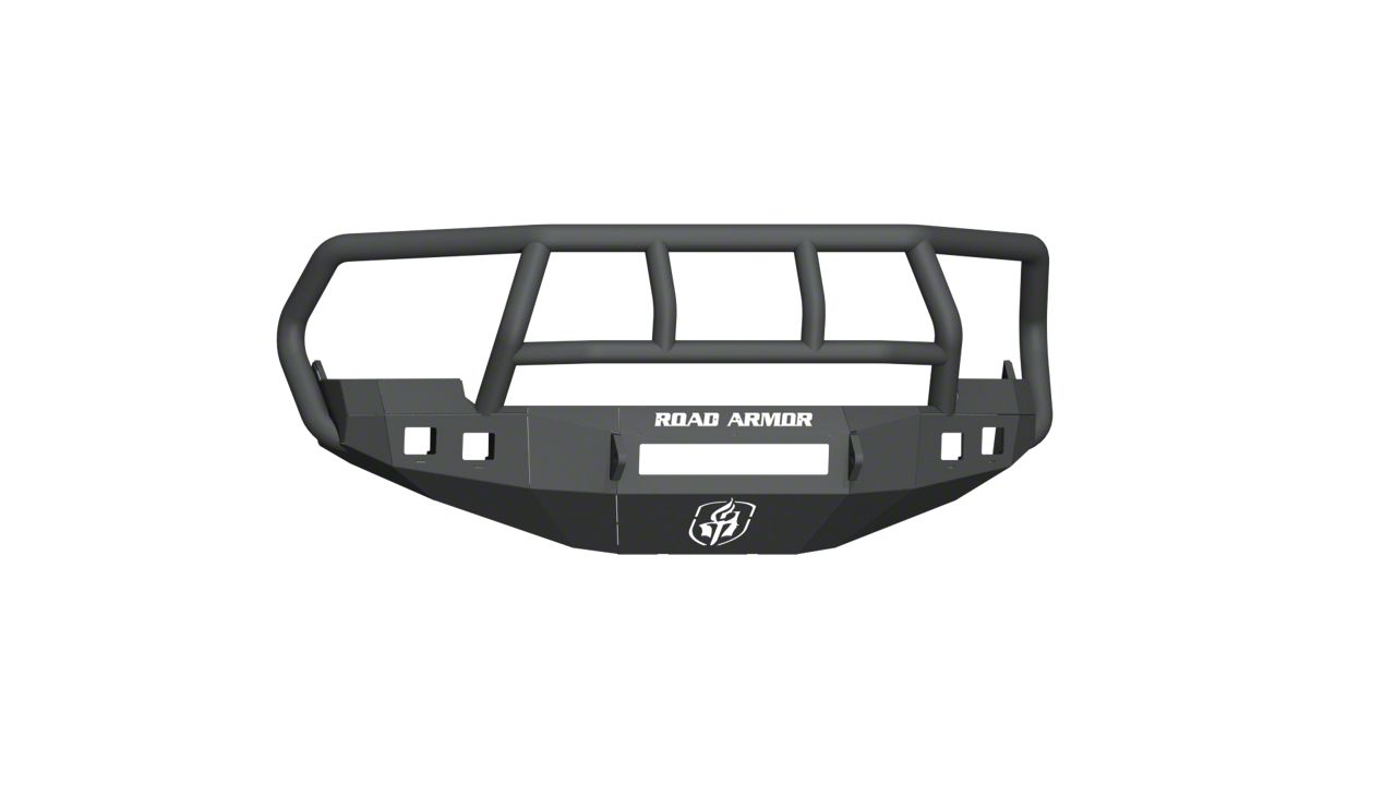 Impregnable Front-End Protection. This Road Armor Stealth Non-Winch Front Bumper with Titan II Guard; Textured Black delivers impregnable protection to your RAM truck’s front end. Featuring a battle-proven design sets up your vehicle for aggressive adventures. This bumper is also engineered for a 16,000-pound winch, allowing you to use it for extra-duty recovery applications. Lastly, its stunning design with its aggressive Road Armor lettering and logo adds a more standout quality to your RAM truck anywhere the roads may lead you.