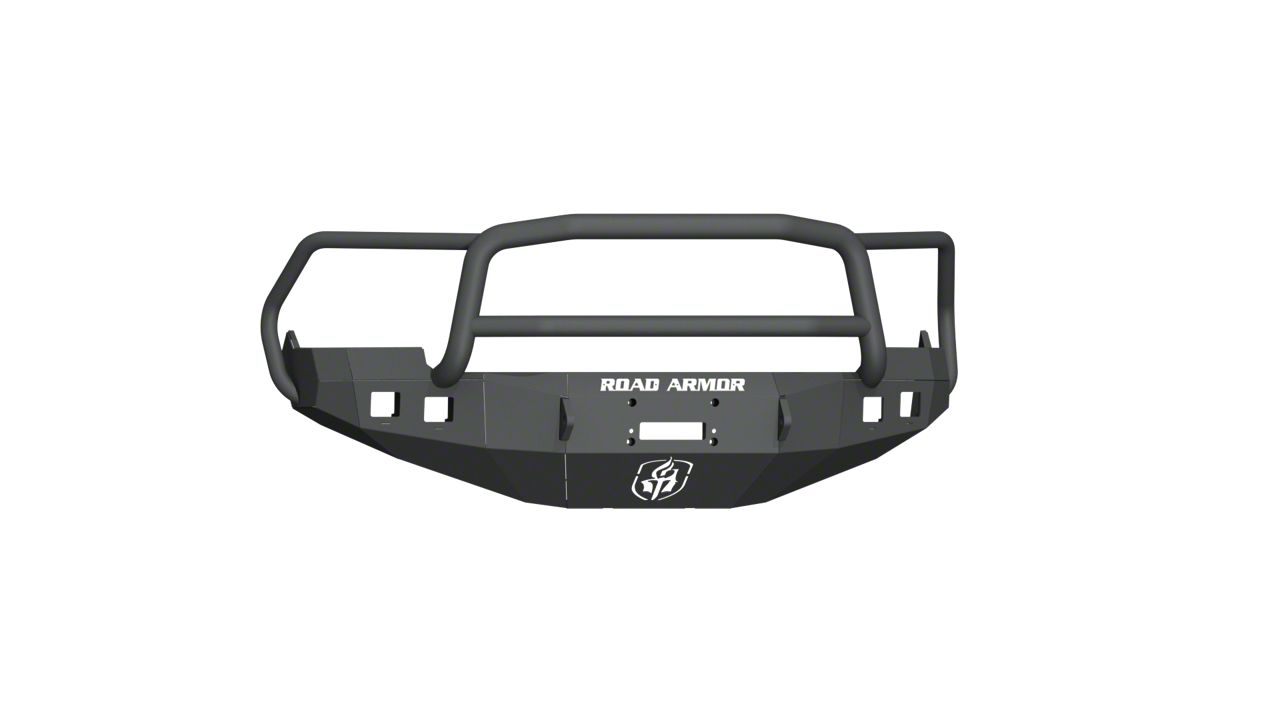 Conquer Trail Obstacles. No trail obstacle can stand in your way with this Road Armor Stealth Winch Front Bumper with Lonestar Guard in a Textured Black finish. This burly bumper protects against scrapes and knocks inherent in off-road driving, while the winch and shackle mounts offer recovery options should the need arise.