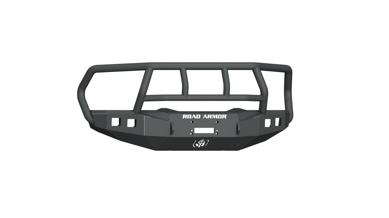 Hit the Trails. Be ready to hit the trails without worrying about damaging your RAM 1500's front end with this Road Armor Stealth Winch Front Bumper with Titan II Guard in a Textured Black finish. This bumper provides your truck a rugged-looking front end while allowing a 12,000-pound winch and D-rings to be mounted for recovery operations.