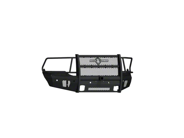 In classic cowboy style the Vaquero is a no frills cattle pushin front end replacement bumper by Road Armor. This modular front bumper accommodate the factory fog lights when equipped and also accommodates the OEM tow hooks. We build this rugged beast using 11 gauge smooth steel for the outer shell, 1/4-inch gusseting and bracketry and the classic beefy Schedule 40 pipe. If this is your style but you want something a little different, a little more refined perhaps, or just want to own the baddest bumper on the market by the name the world trusts for dependability and quality, this one's for you.