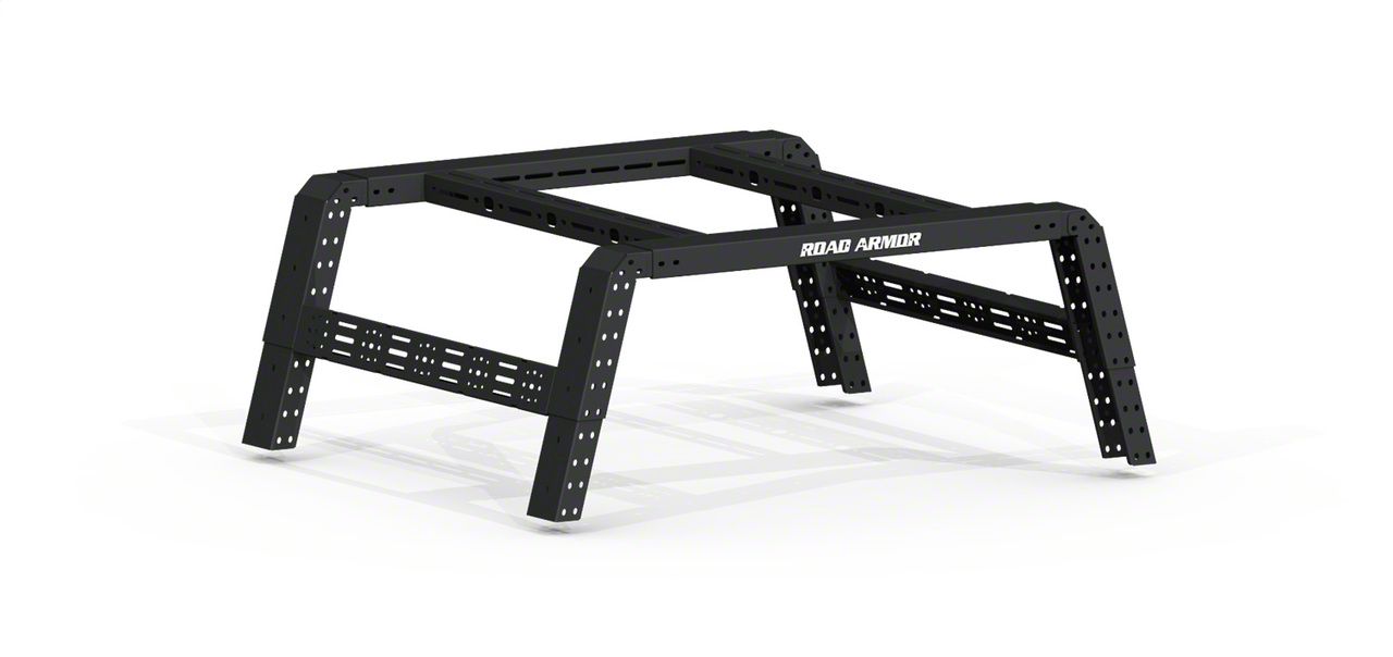 Haul Smarter. Looking for a smart way to carry cargo with your truck? The RAM 2500 Road Armor TRECK Adjustable Bed Rack System gives you many options to haul cargo with your truck, whether for work, an overlanding adventure, or something in between. It provides different options for carrying cargo, so you arrange things how you need them. The Adjustable Bed Rack System features a double nut plate to attach it to your truck’s factory bedside rails. It’s ready for adventure. Please note: works with 6.4-foot boxes.