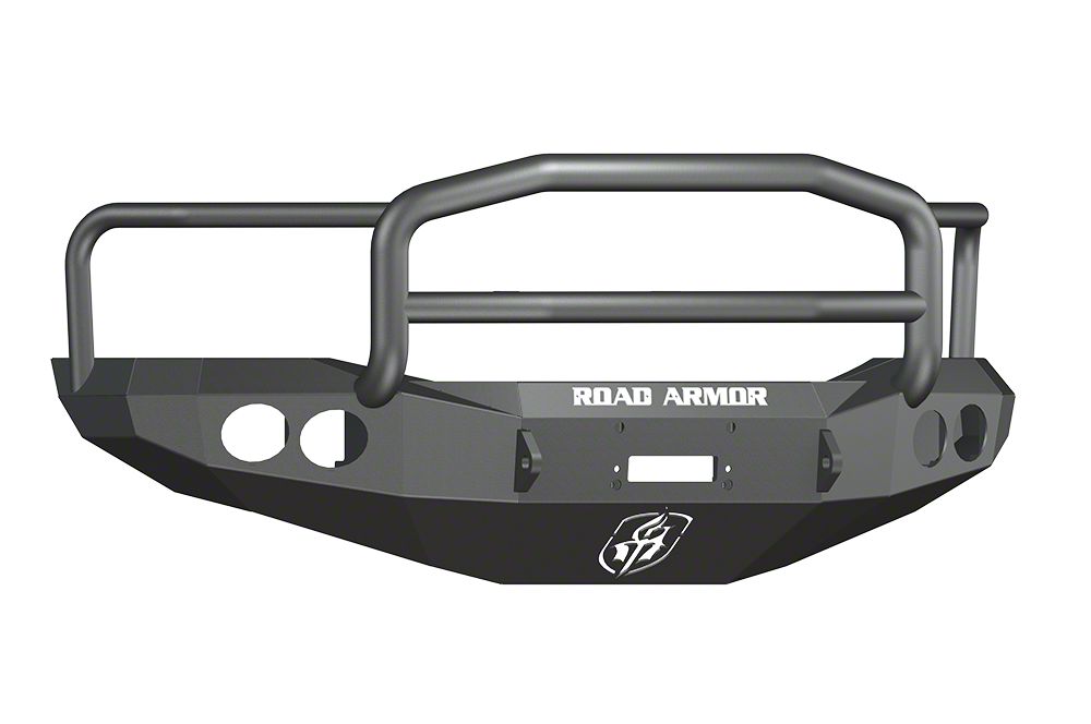 Road Armor Stealth Full Replacement Winch Bumpers are rugged, and loaded with added utility. The Original Faceted Stealth Series Steel Bumper in our Standard Premium 5-stage Satin Black powder-coat finish was the pioneer of the aftermarket bumper segment. Specifically designed to follow, compliment, and accentuate the body lines of your vehicle, this masterpiece of metal houses a WARN M12000, Smittybilt XRC winch or similar and has recessed light ports for (4x) 4-inch diameter : PIAA 510 or Quake LED QFR199 and (3x) Light Tabs on Lonestar Guard*.