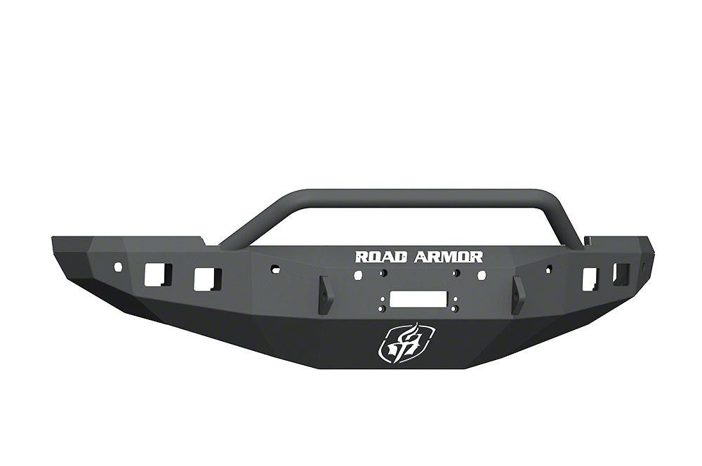 Construction and Appearance. Constructed from CNC-laser cut 3/16-inch heavy-duty steel, the Road Armor Stealth Winch Front Bumper ensures resilience and durability. Its textured black powder-coat finish not only adds to its rugged appearance but also provides an additional layer of corrosion resistance. Manufactured in the USA, this bumper promises quality and a perfect fit.