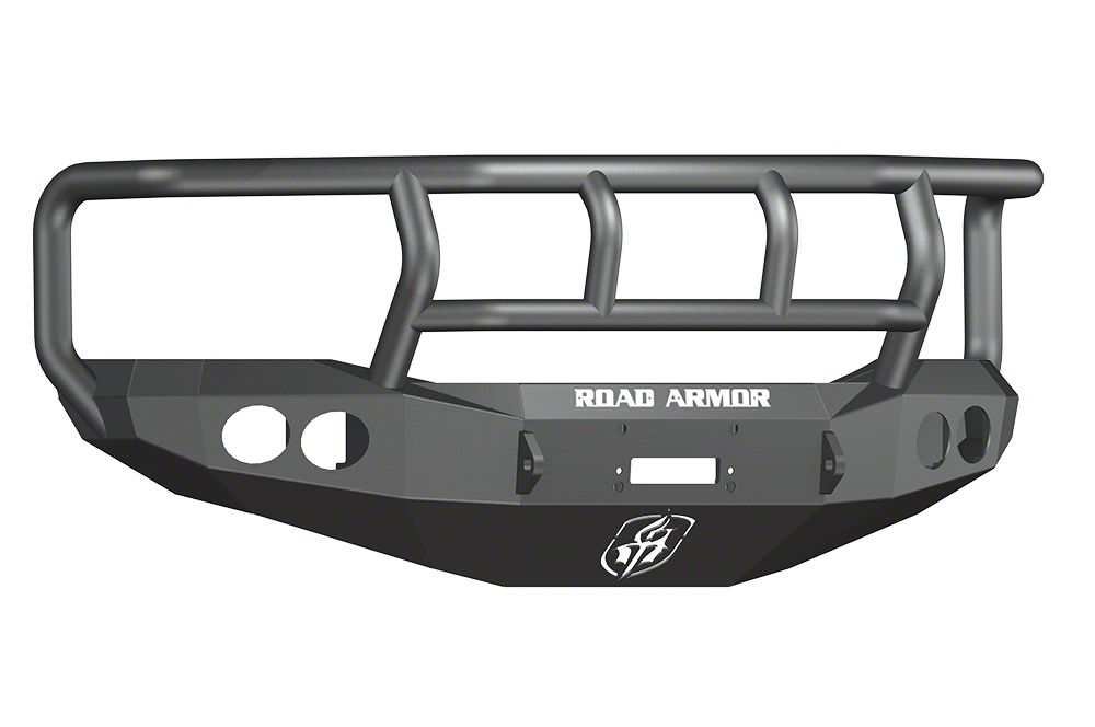 Aggressive Off-Road Styling. Transform your RAM 3500 with the Road Armor Stealth Winch Front Bumper with Titan II Guard; Textured Black. This rugged and versatile bumper, finished in a textured black, is the ultimate upgrade for your truck, combining unparalleled protection, functionality, and aggressive styling. Designed with functionality in mind, this bumper includes an integrated winch mount, capable of accommodating a variety of winches. This feature is essential for recovery situations and adds practicality to your off-road setup.