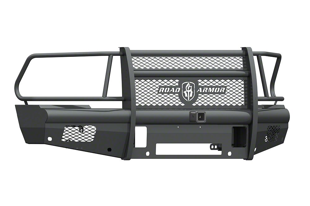 Protective Winch-Equipped Design. Made for the 2010-2018 Dodge RAM 3500, this Road Armor Vaquero Bumper comes in a textured satin black finish. Crafted from 11 gauge smooth steel with 1/4-inch gusseting and bracketry with schedule 40 piping to a protective full-width design, this bumper is hand welded with license plate mounting holes for compatibility.