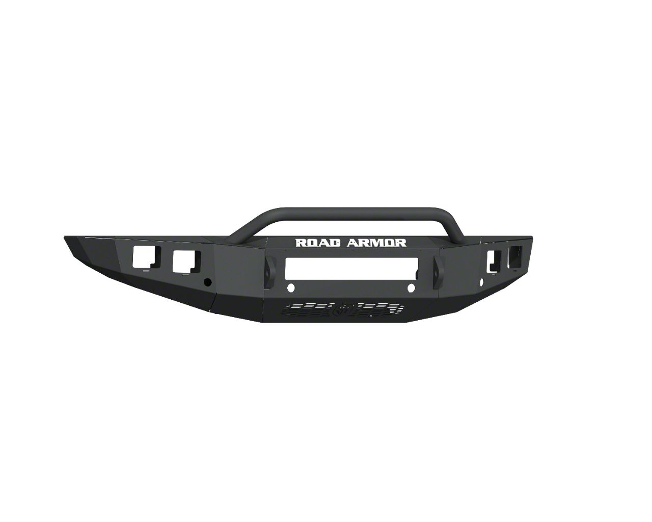 Superior Front-End Protection and Utility. Meet the challenges of the roads head-on with the aggressive protection that the Textured Black Road Armor Stealth Non-Winch Front Bumper with Pre-Runner Guard delivers. This extra-duty front bumper transforms your truck into a more capable off-roader with its D-ring mounts and heavy-duty construction. Meanwhile, its pre-runner guard adds extra front-facing protection and may be used as an additional light mount or towing support. With this front bumper, you can conquer the trails with unrelenting confidence.