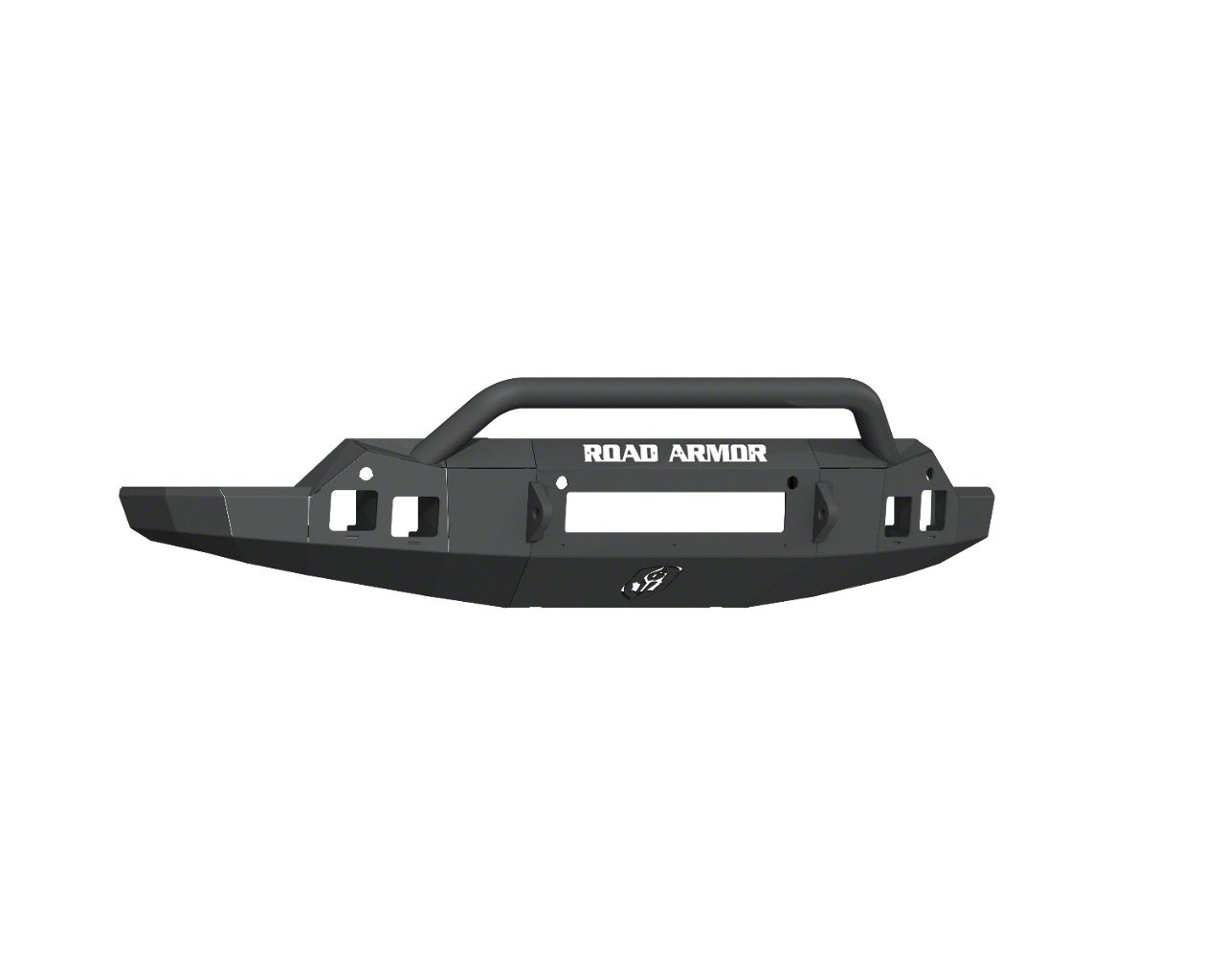 Hardcore Styling. Ready your Sierra to meet any challenge with this Road Armor Stealth Non-Winch Front Bumper with Pre-Runner Guard; Textured Black. Precision built, it is designed to assist you in your trail drives, protecting your vehicle from debris and enabling the mounting of additional accessories and other tools to your vehicle.