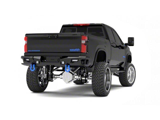 Application. The Road Armor iDentity Beauty Ring Rear Bumper with Shackle End Pods, Dual Pod and Single Row Light Bar Pods; Light Textured Black fits 2020-2026 Sierra 2500 HD models.