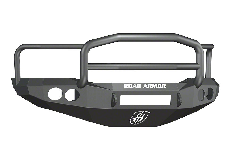 Customized Protection. To keep the front end of your 2006-2008 Dodge RAM 1500 protected from the various obstacles, debris, and terrain you'll encounter off road, replace your less than satisfactory stock front bumper with Road Armor's Satin Black Stealth Non-Winch Front Bumper with Lonestar Guard and Round Light Mounts. This replacement bumper features a hardcore, aggressive style that not only boosts your rig's overall appearance by complimenting its body lines, but also guards against damage with a Lonestar Guard to ensure you're ready for the toughest off-road drives.